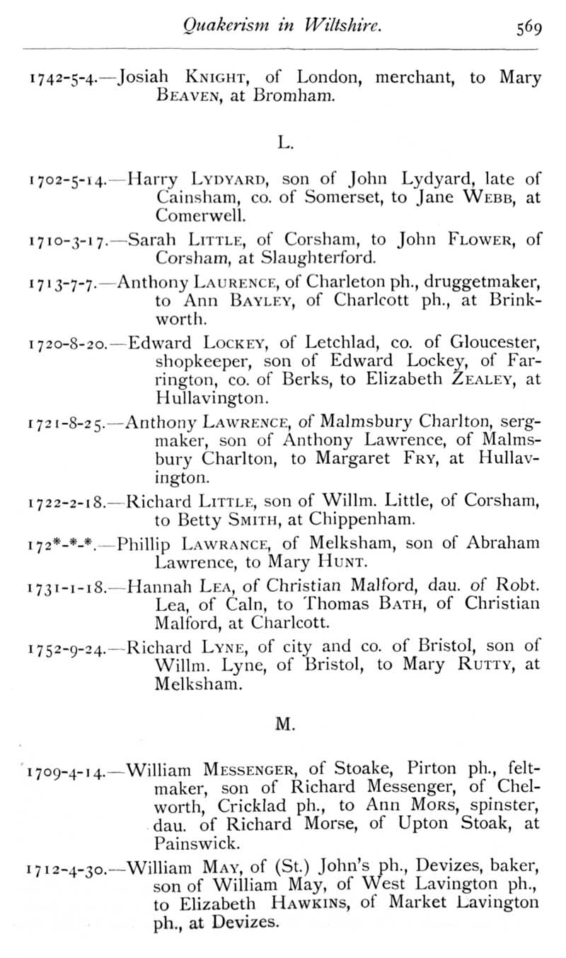 Page 28 Quakers in Wiltshire : marriage records.