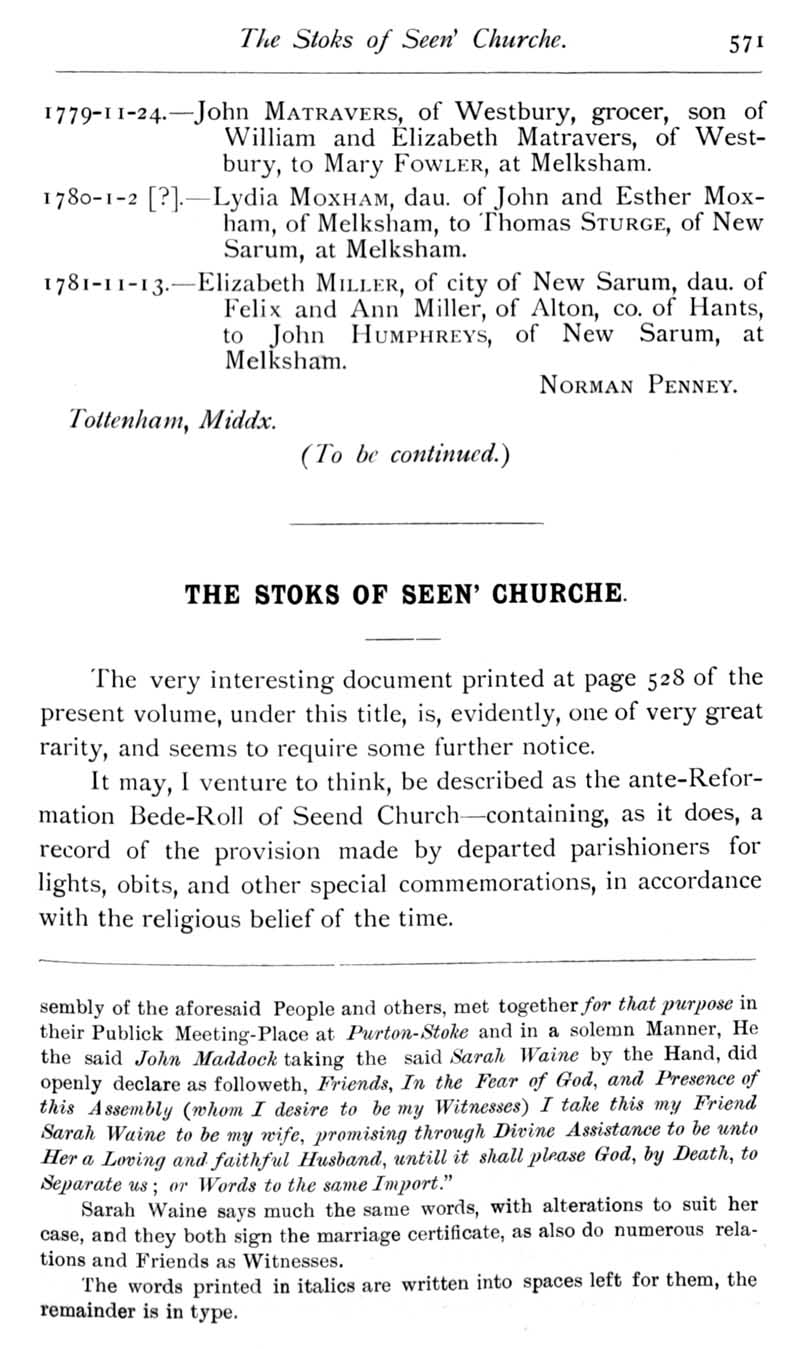 Page 30 Quakers in Wiltshire : marriage records. The Stokes family of Seend and Seend Church.