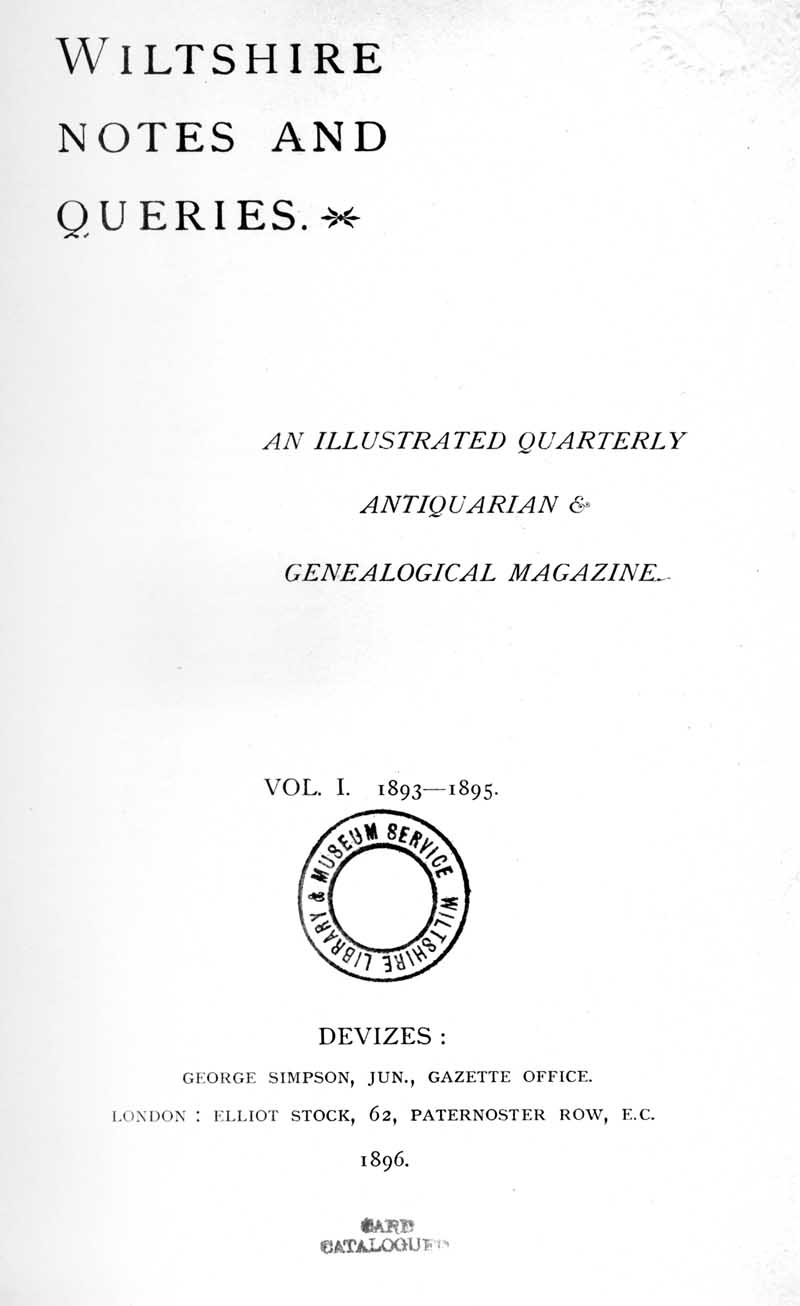 Book 1 Wiltshire Notes and Queries, Vol. 1, 1893-1895