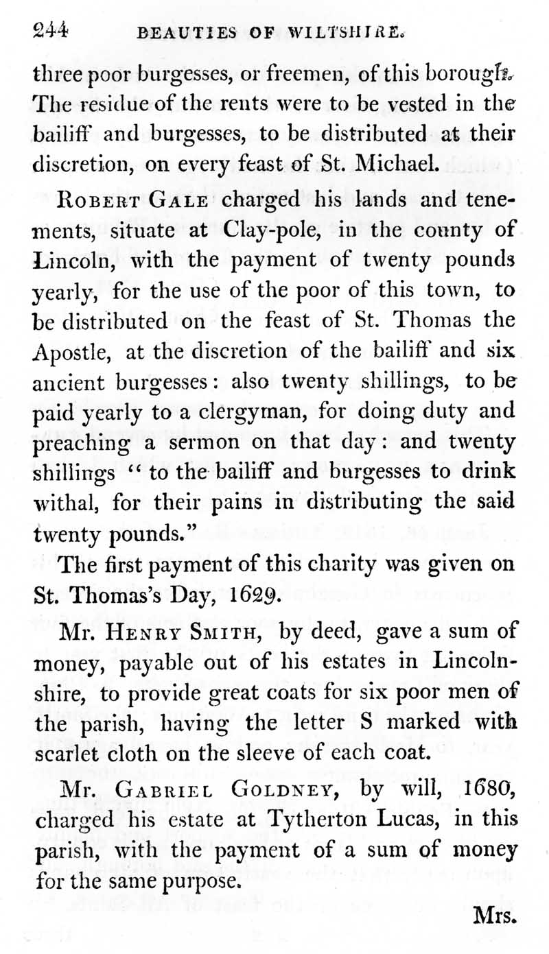 Page 9 History of Chippenham; the church and its monuments and charities, Sir Francis Popham, Robert gale, Henry Smith, Gabiel Goldney.