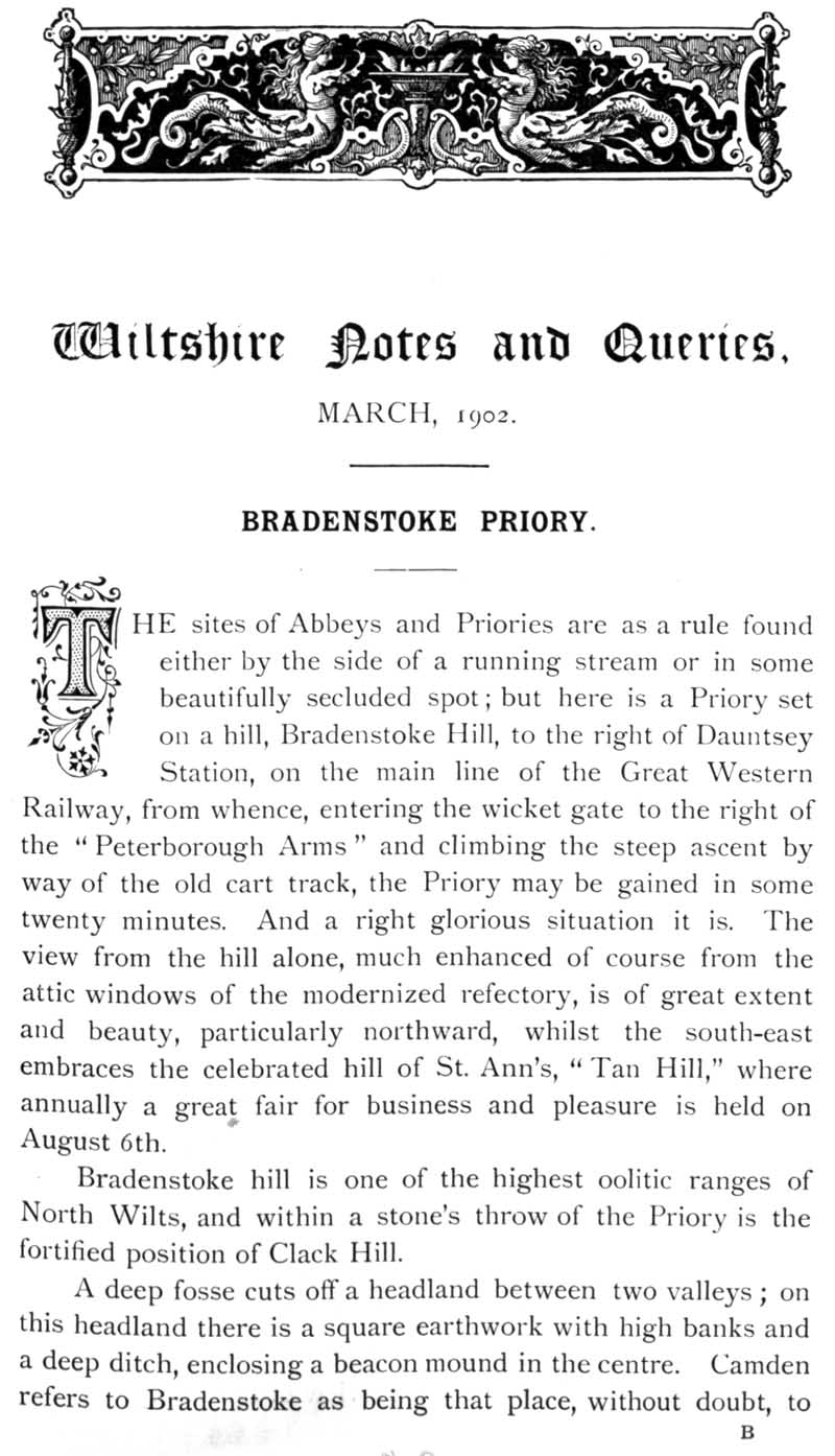 Page 1 Describes the setting of Bradenstoke Priory.