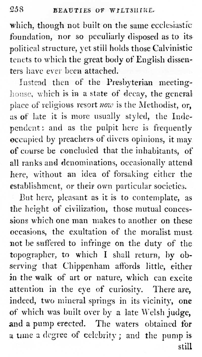 Page 23 History of Chippenham; non-conformists; mineral springs.