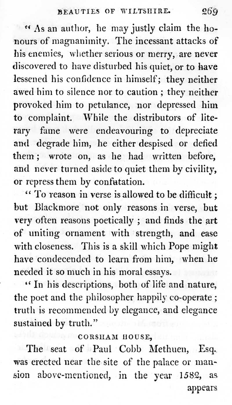 Page 6 History of Corsham; Sir Richard Blackmore; Corsham House and Paul Methuen.