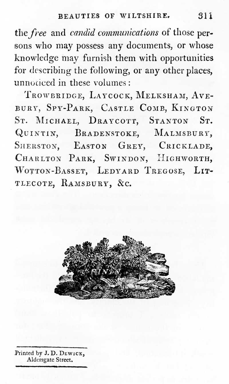 Page 10 Advertisement for Volume 3 of the Beauties of Wiltshire.