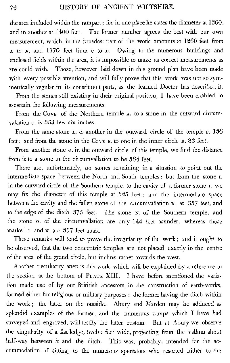 Page 23 Avebury; possible dimensions of the cove; north and south temples. Ditch within the bank as at Marden henge.