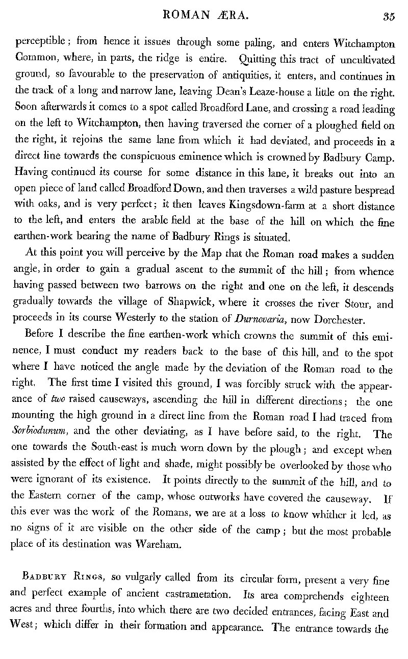 Page 16 Roman road through Critchel to Badbury Rings. Description of Badbury Rings.
