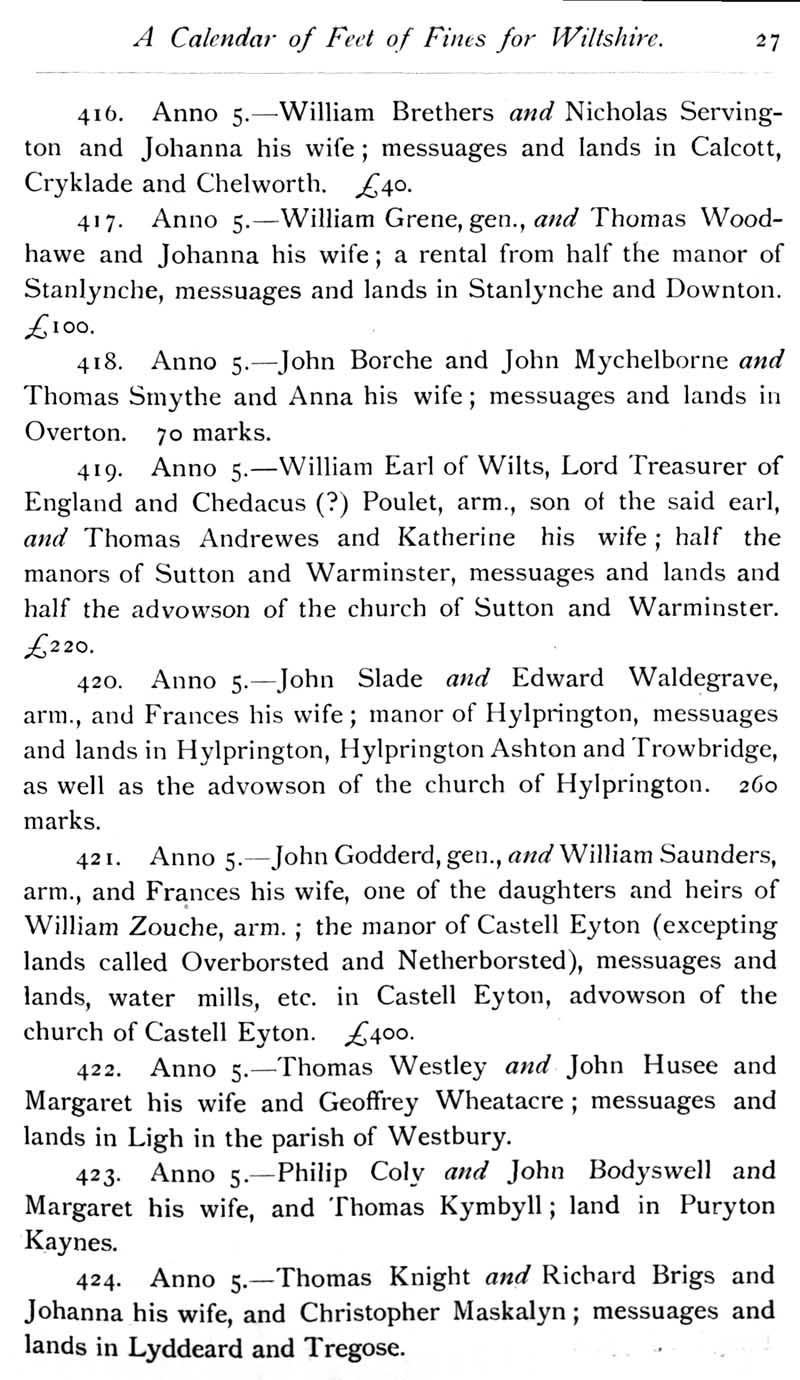 Page 28 Feet of Fines for Wiltshire