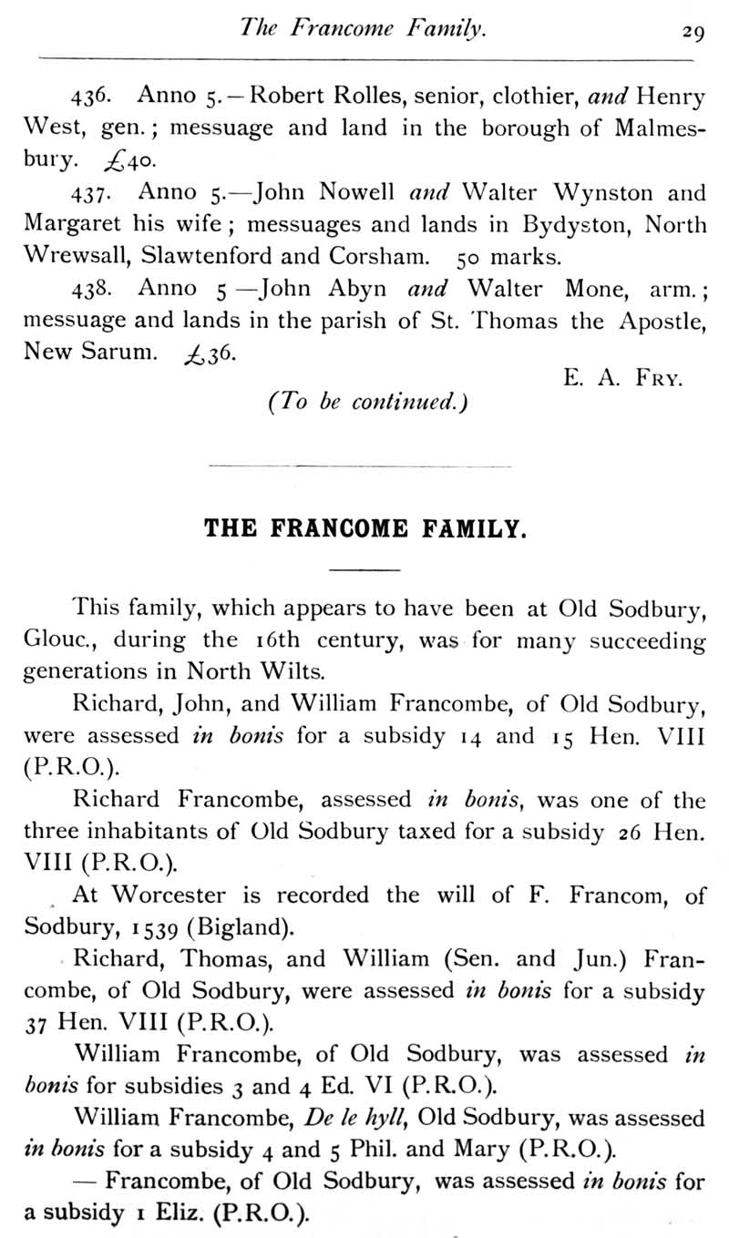 Page 30 Feet of Fines for Wiltshire, The Francome Family