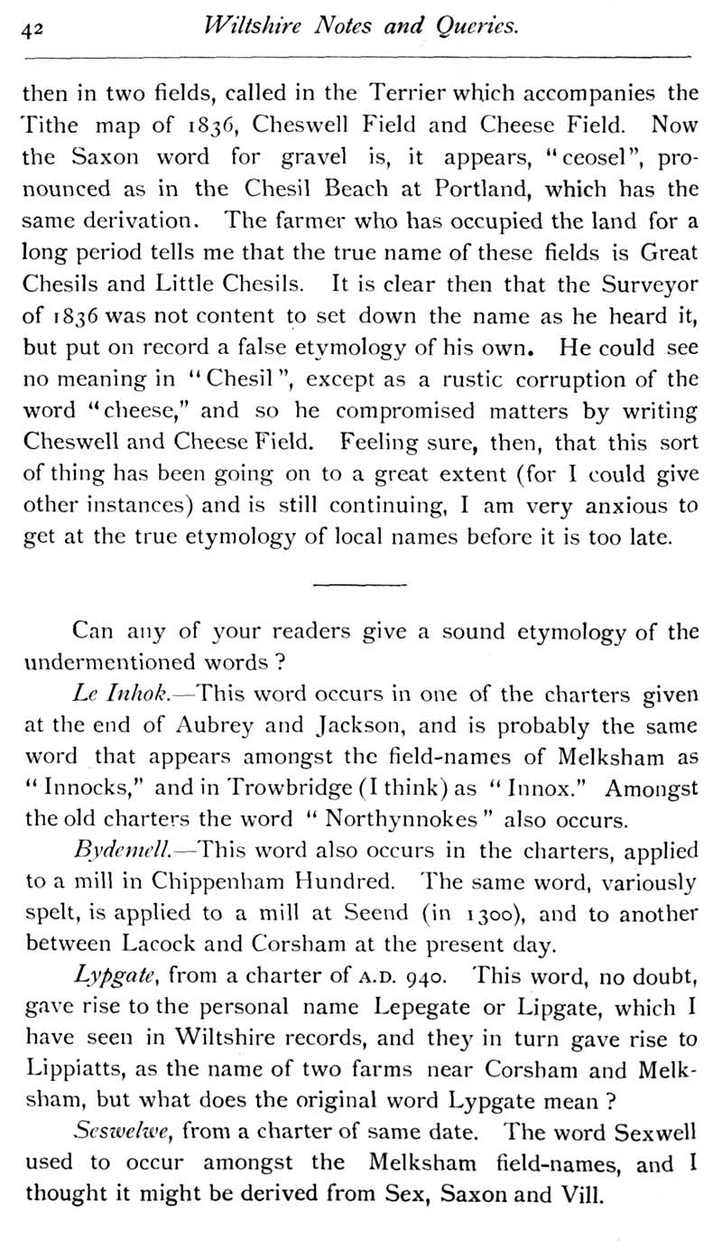 Page 43 Place names: Chesils, Innox, Lippiatts, Sexwell