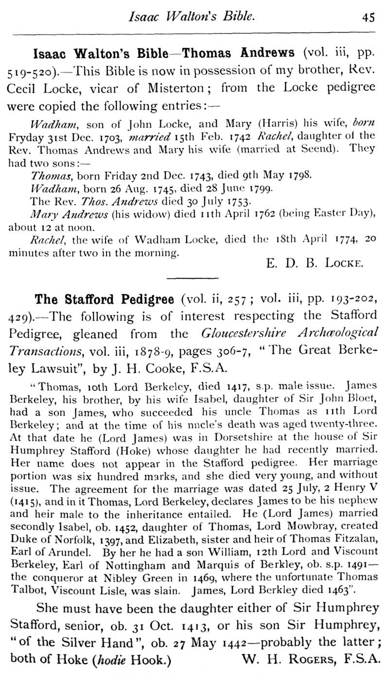 Page 46 The Locke family, sourced fron Isaac Walton's Bible, The Stafford Pedigree