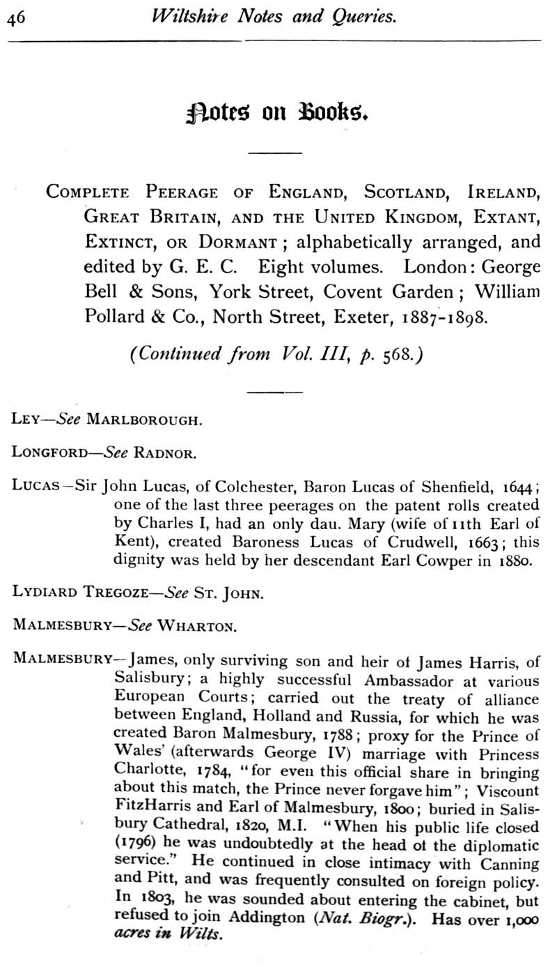 Page 47 Peerage (continued from Vol 3): Ley, Longford, Lucas, Lydiard-Tregose, Malemsbury