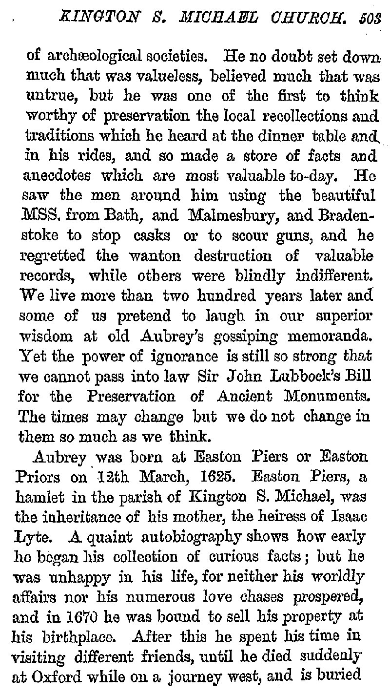 Page 537 History of the church of St. Michael, Kington St. Michael.