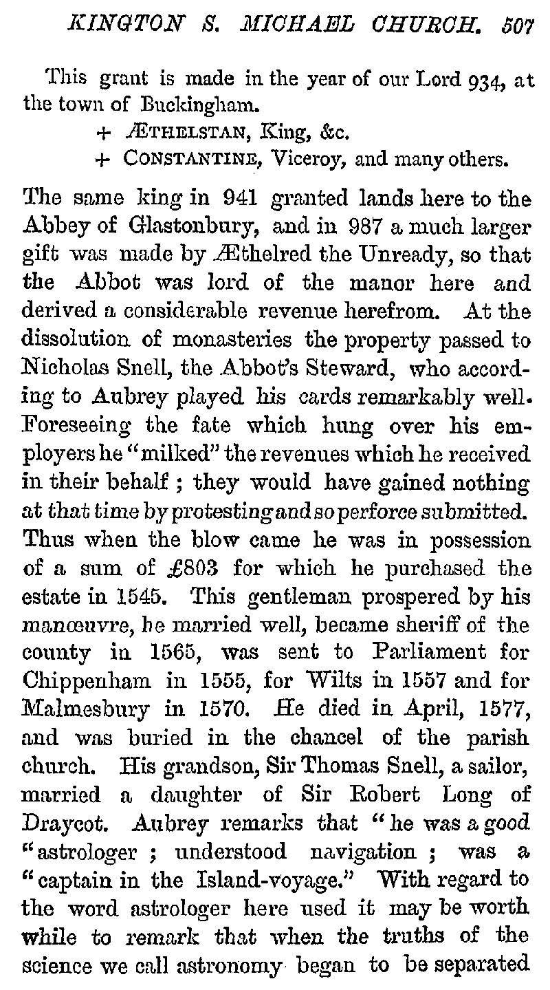Page 541 History of the church of St. Michael, Kington St. Michael.
