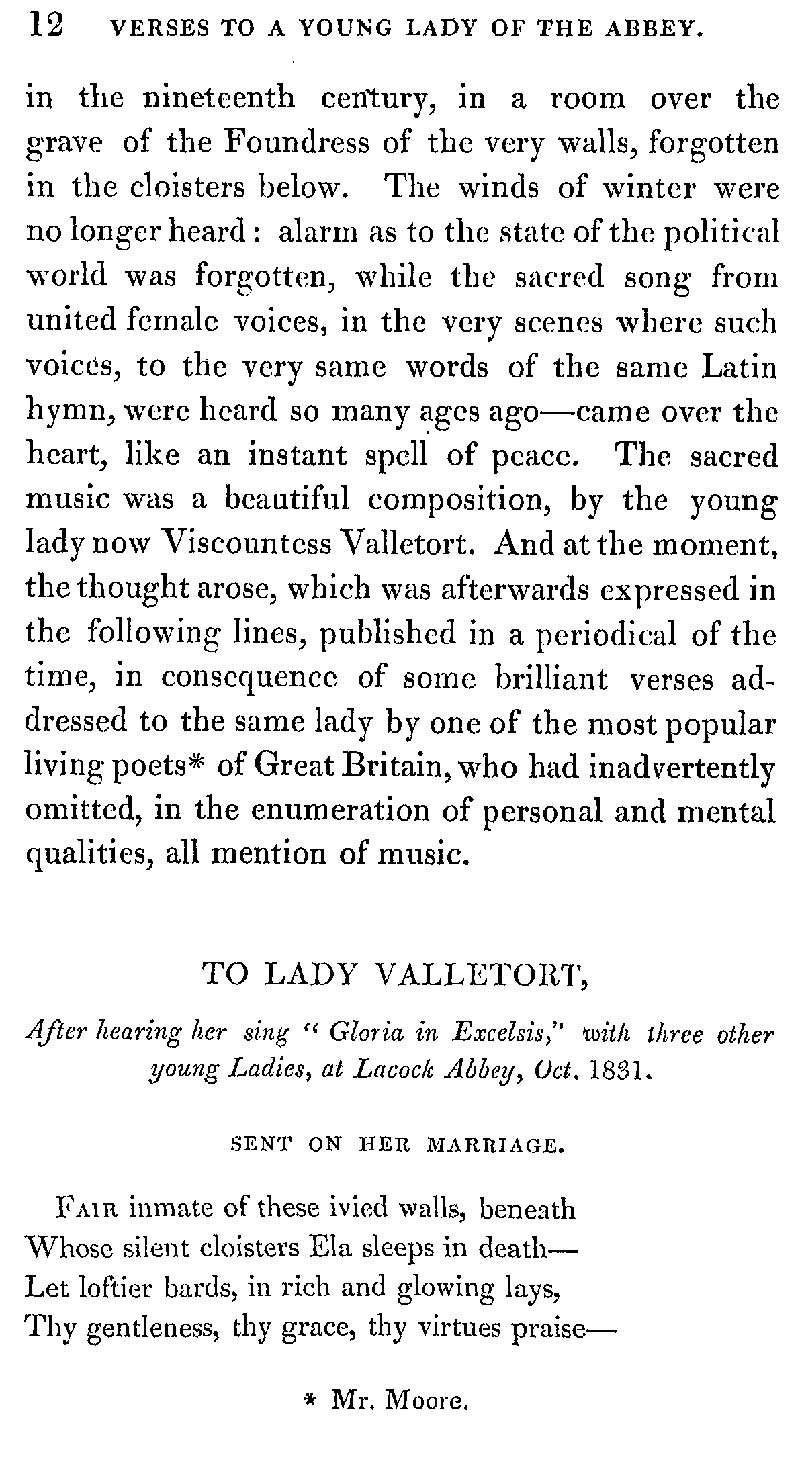 Page 12 Writing of Lacock Abbey; verses to Lady Valletort.