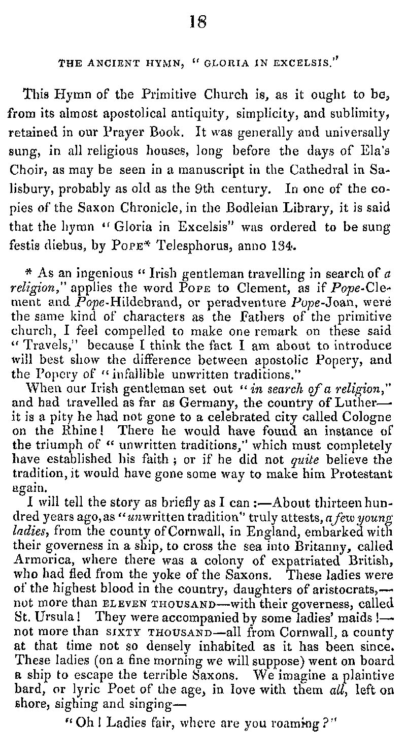 Page 18 Hymn, Gloria in Excelsis; St. Ursula and 11,000 virgins.