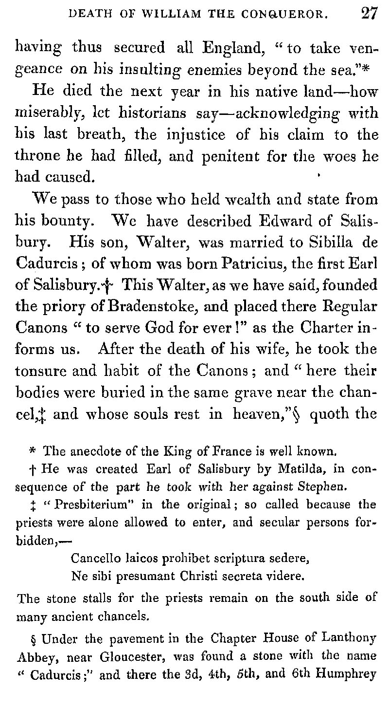 Chapter 3 Family of the Earls of Salisbury; Bradenstoke Priory.