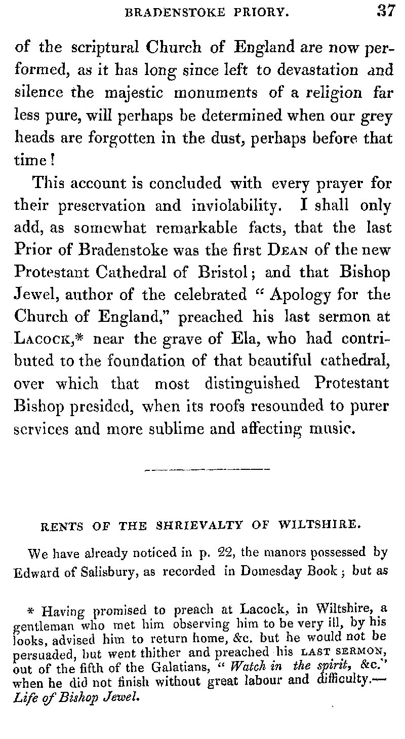 Page 19 State of Bradenstoke Priory in 1835; rents of the Shrievalty of Wiltshire.