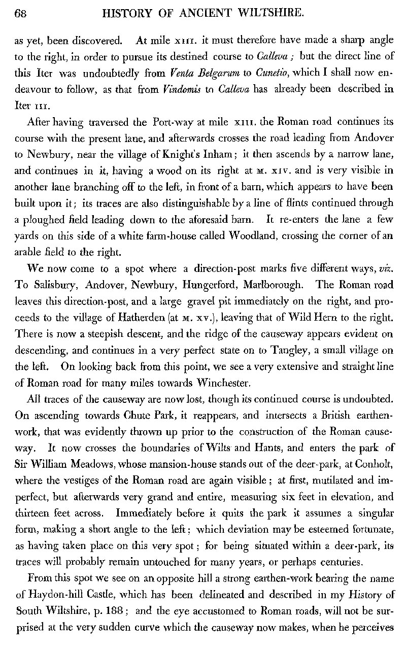 Page 3 The course of the Roman road from Winchester to Cunetio (Mildenhall); Knight's Enham, Tangley, Chute and Conholt.