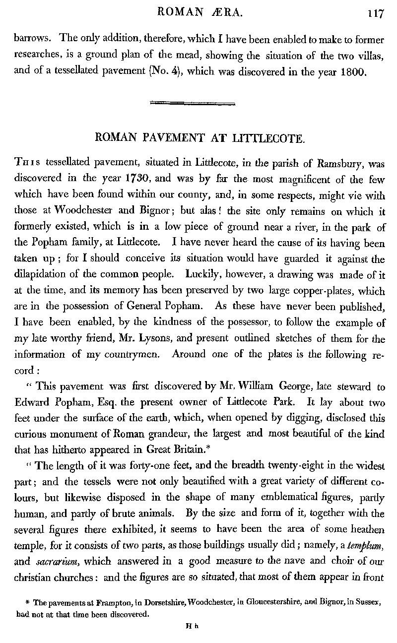 Page 10 The finding and description of a Roman mosaic at Pit Meads, Norton Bavant, Warminster. Finding and description of a Roman mosaic at Littlecote, Chilton Foliat.