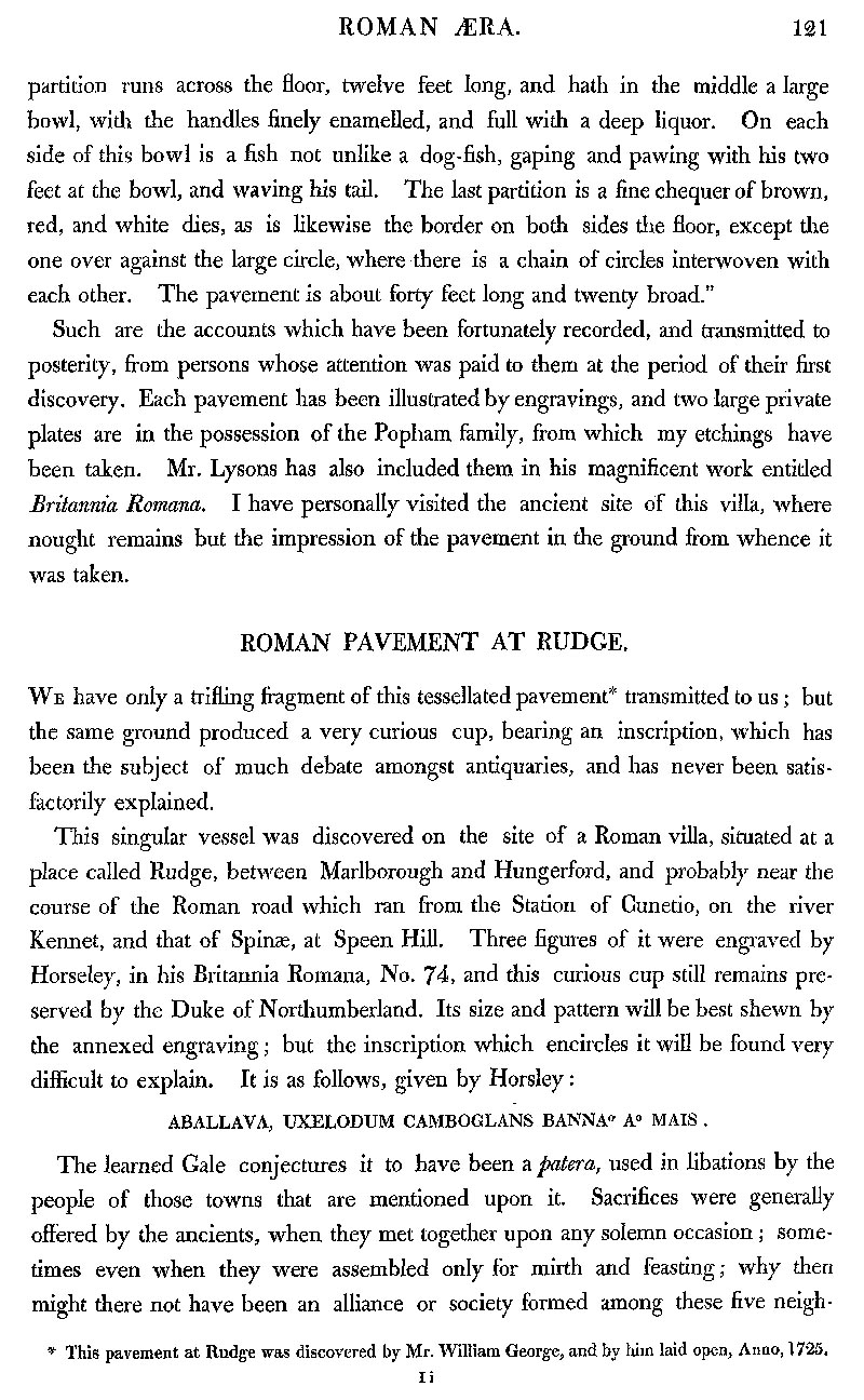 Page 15 Finding and description of a Roman mosaic at Littlecote, Chilton Foliat. Description of a Roman mosaic and cup found at Rudge, Froxfield.