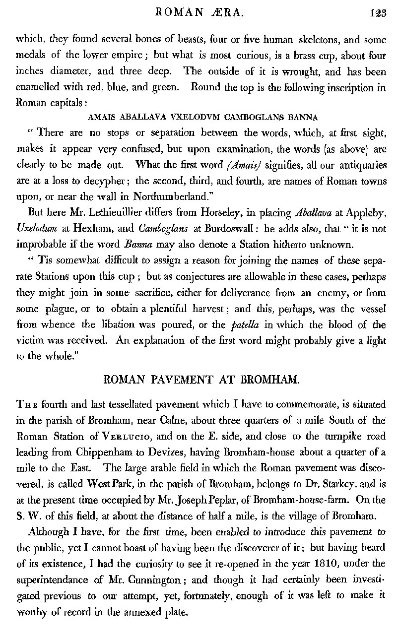 Page 18 Description of a Roman mosaic and cup found at Rudge, Froxfield. Description of a Roman mosaic at Bromham.