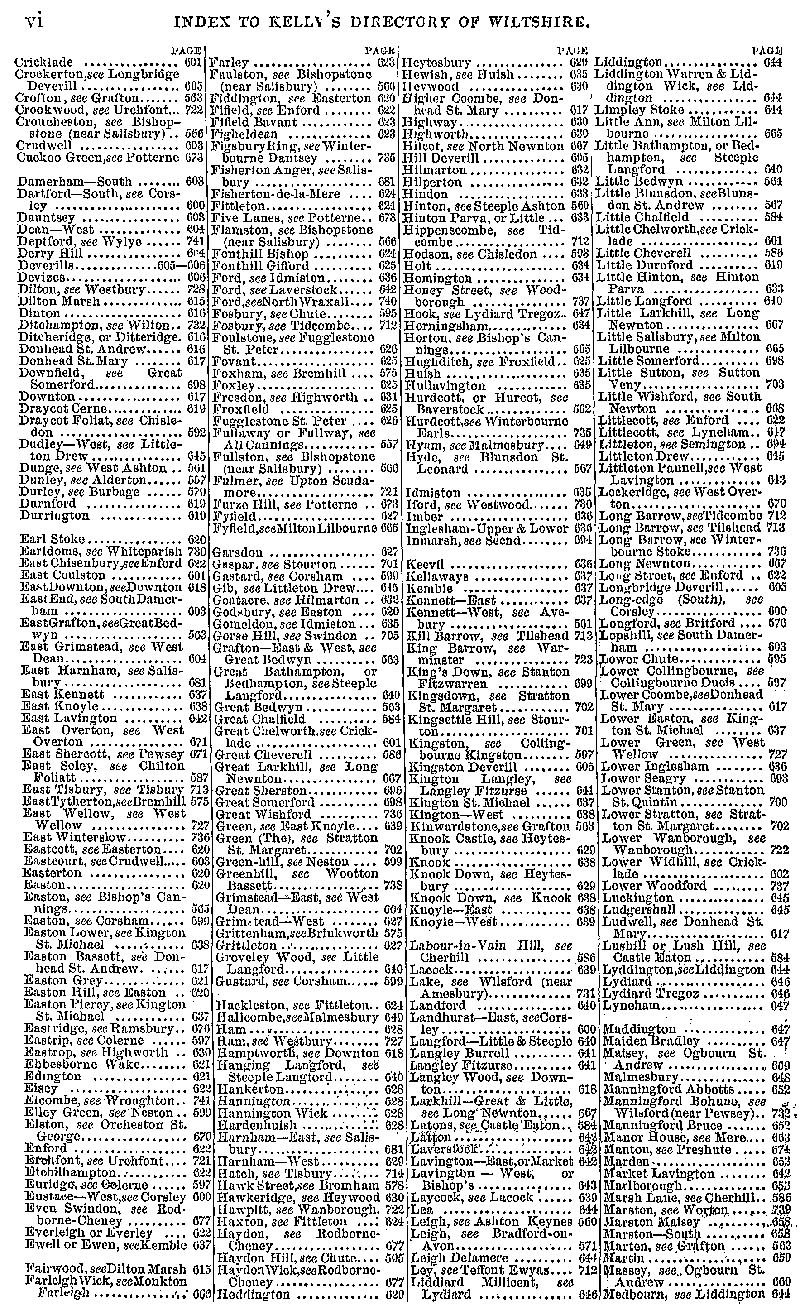 Page 6 Index, Cricklade-Medbourn