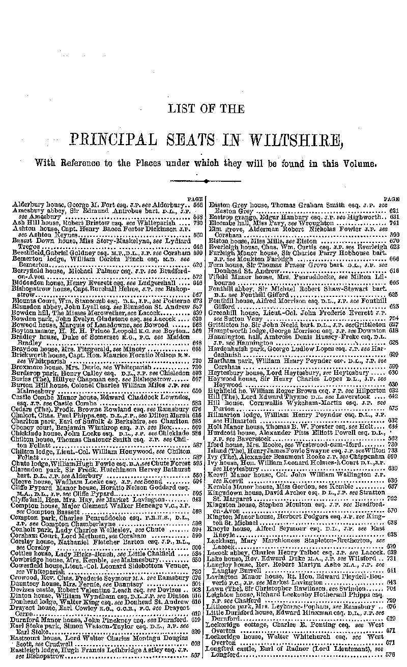 Page 9 Index to the principal seats in Wiltshire, Alderbury House-Longford Castle.