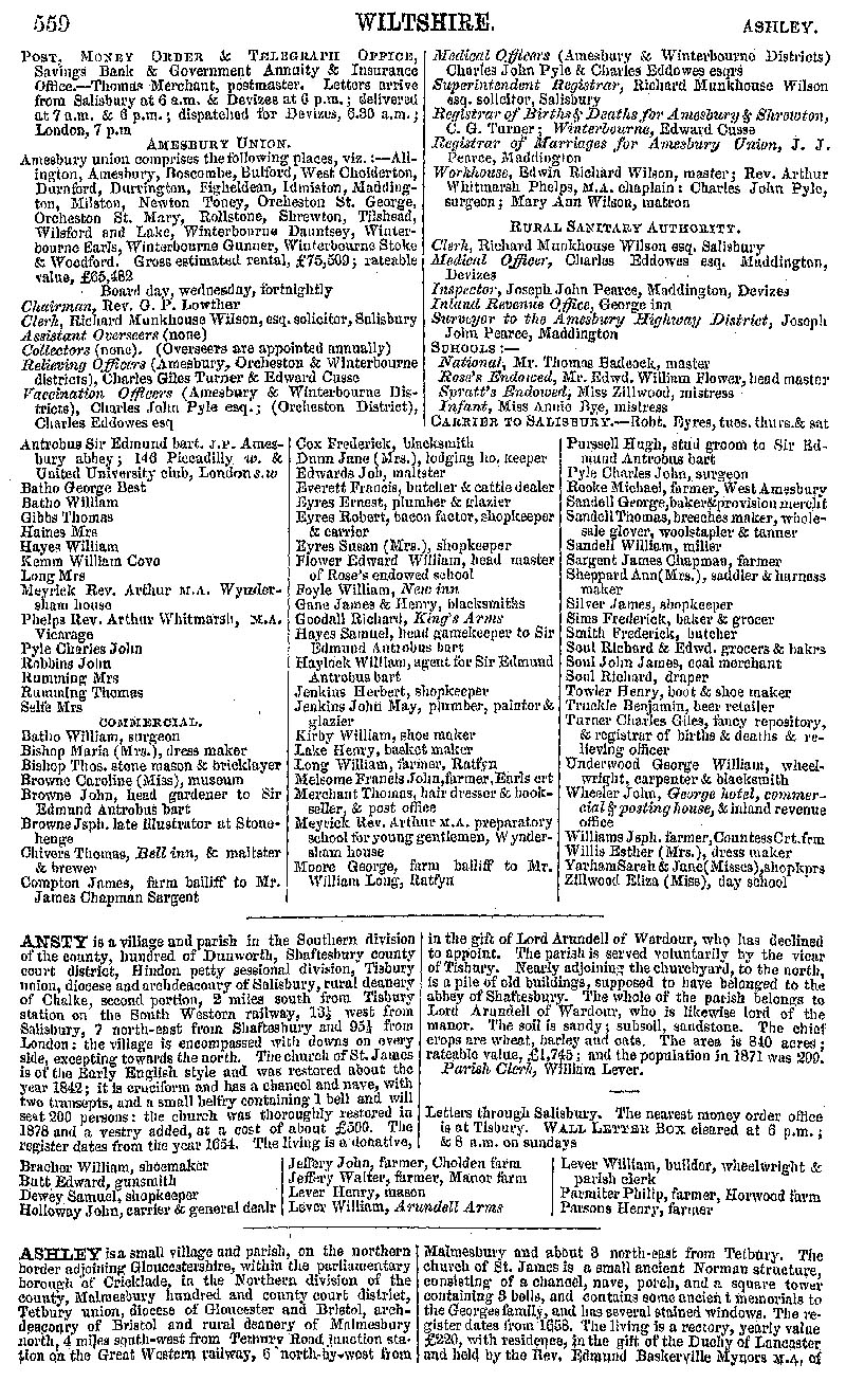 Page 4 Description and residents of Amesbury, Ansty and Ashley (now in Gloucestershire).