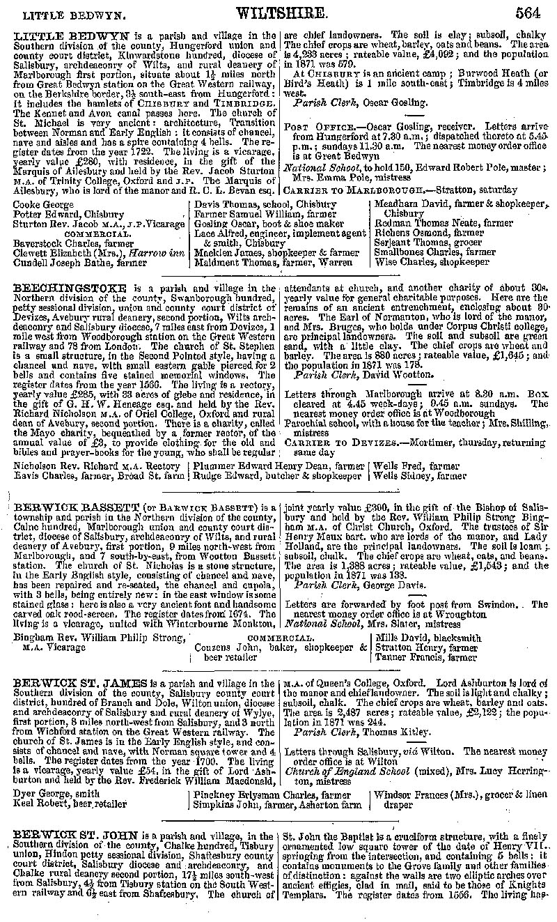 Page 9 Description and residents of Little Bedwyn, Beechingstoke, Berwick Bassett, Berwick St. James and Berwick St. John.