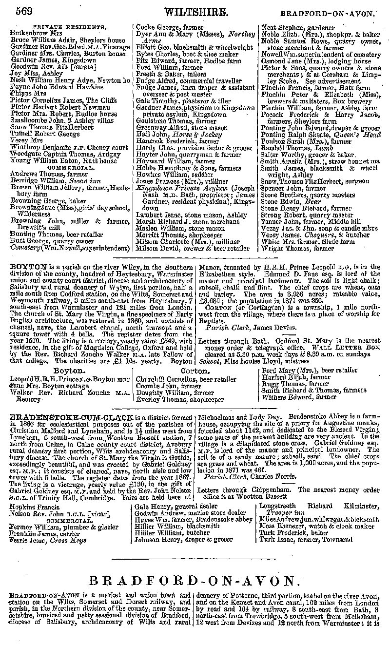 Page 14 Description and residents of Box, Boyton, Bradenstoke (now in Lyneham parish) and Bradford on Avon.