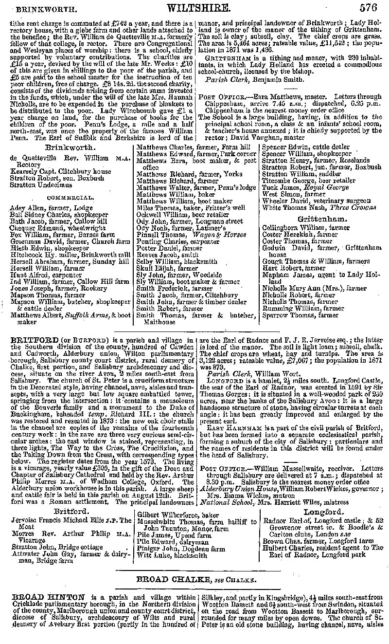 Page 21 Description and residents of Brinkworth with Grittenham, Britford and Broad Hinton.