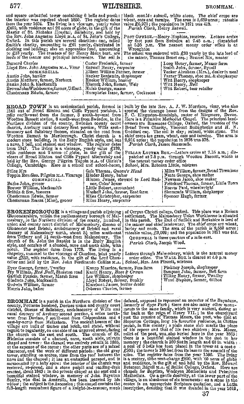 Page 22 Description and residents of Broad Hinton, Broad Town, Brokenborough and Bromham.
