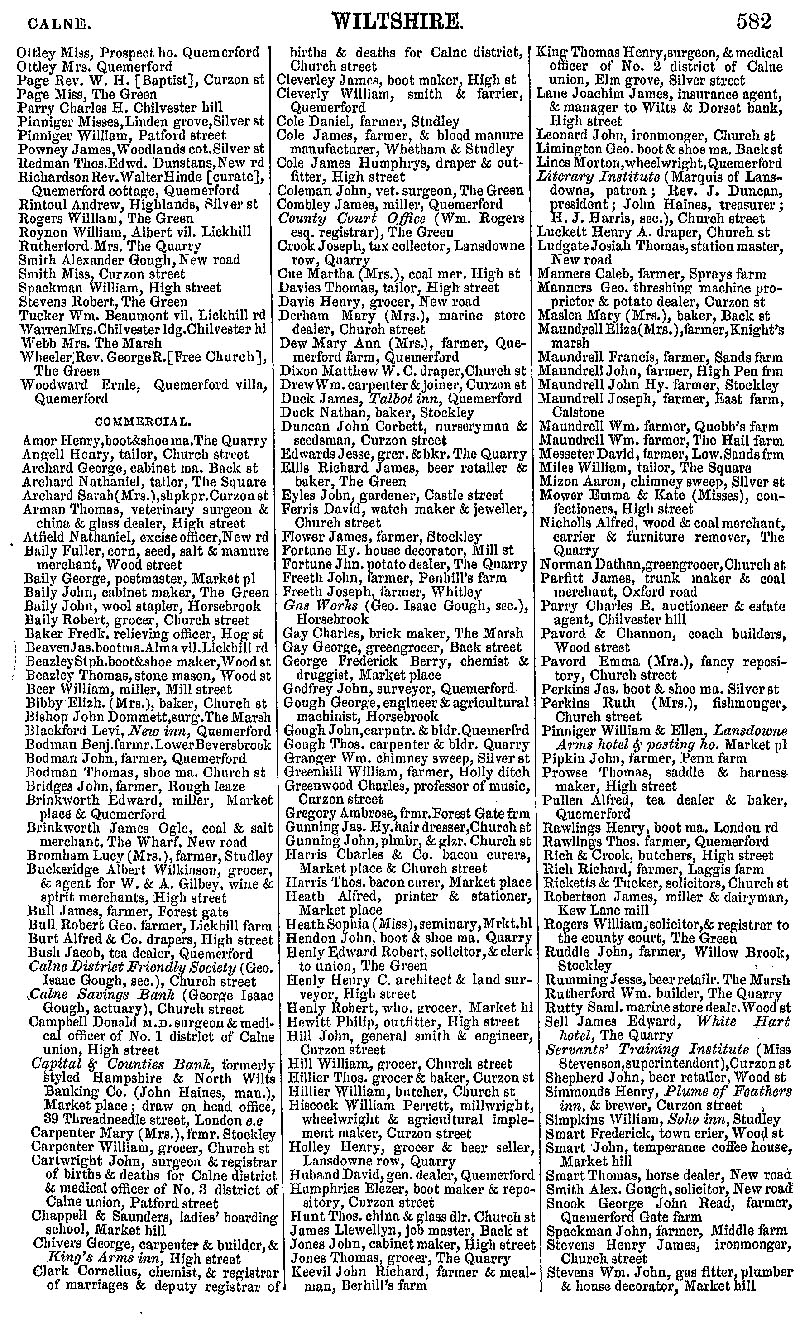Page 27 Calne; private residents from Ottley to Woodward, businesses from Amor to Stevens.