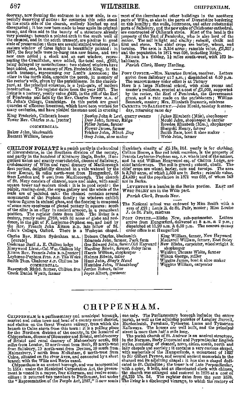 Page 32 Description and residents of Chilmark and Chilton Foliat. Chippenham; history and description.