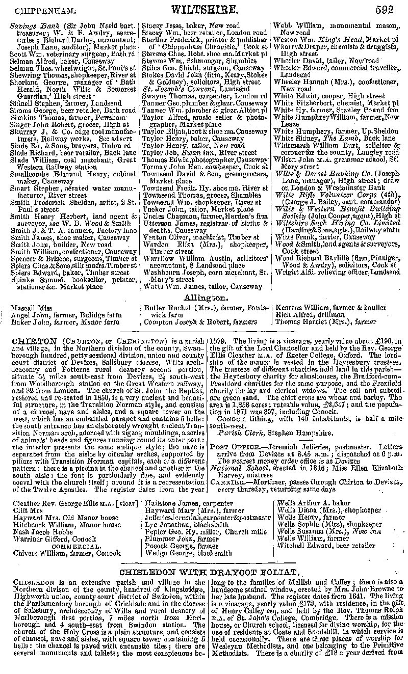 Page 37 Chippenham; businesses from Savings Bank to Wright; Allington residents. Description and residents of Chirton and Chiseldon.