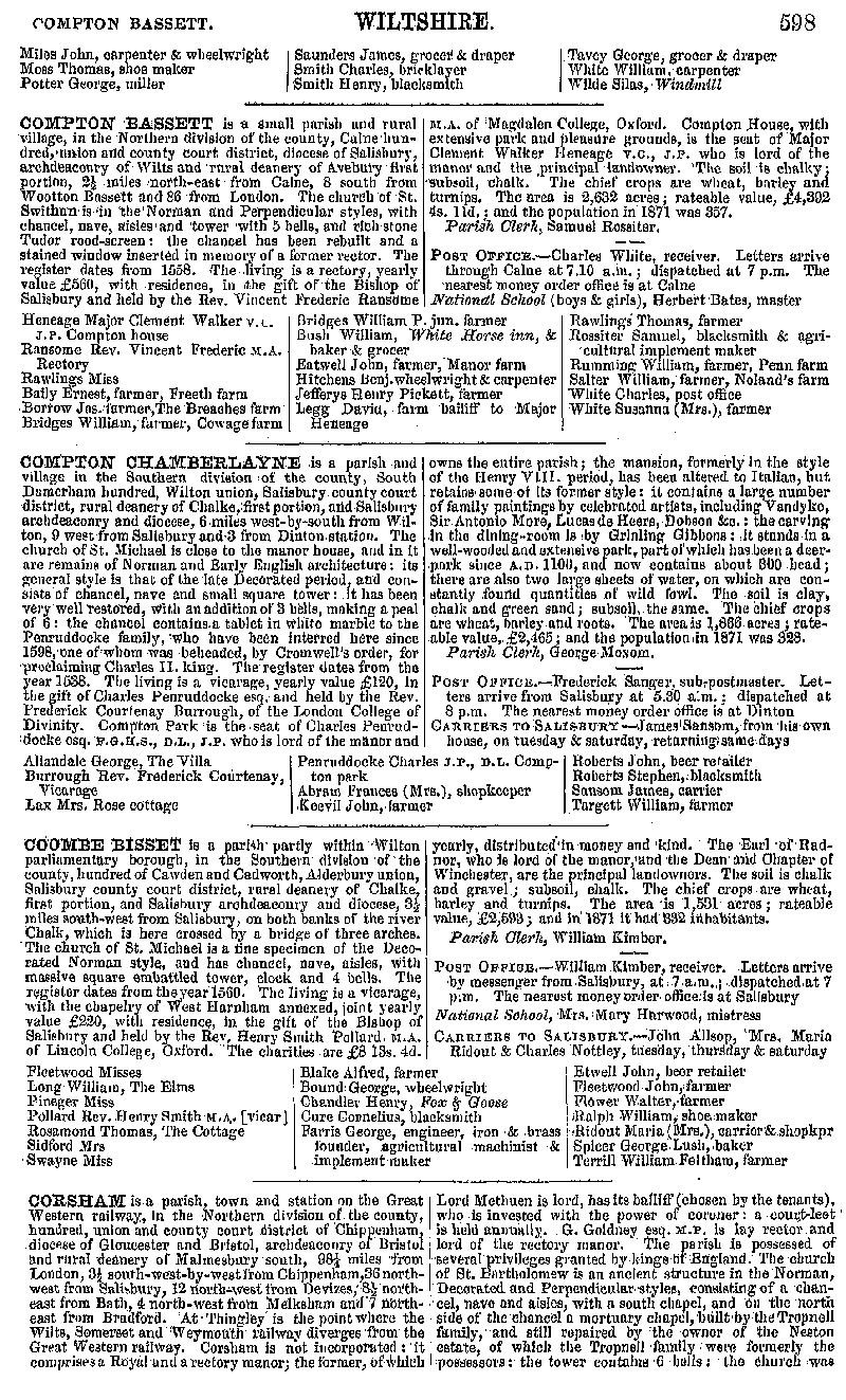 Page 43 Description and residents of Collingbourne Kingston, Compton Bassett, Compton Chamberlayne and Coombe Bisset. Corsham; history and description.