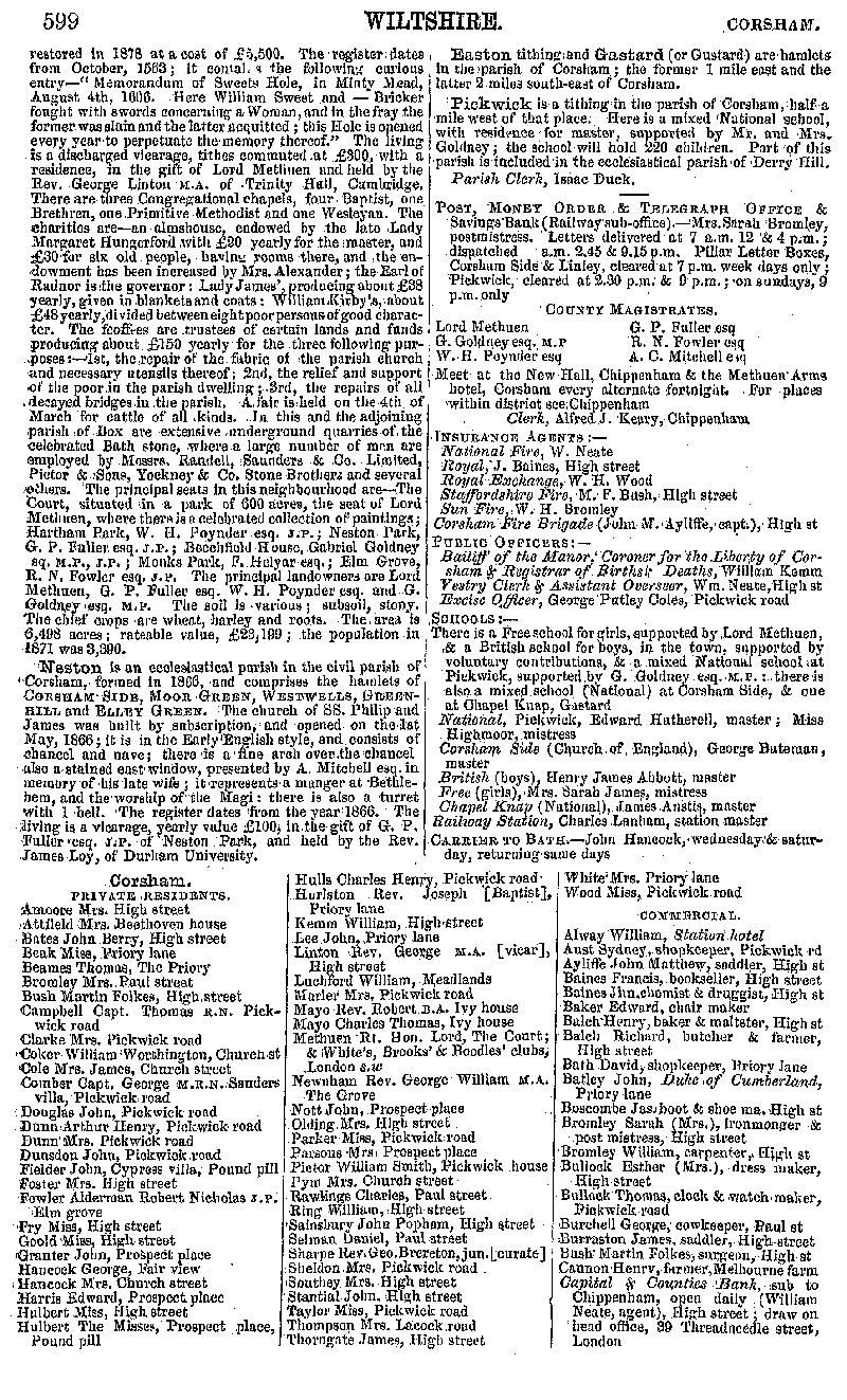 Page 44 Corsham; history and description, official establishments, private residents, businesses from Alway to Capital and Counties Bank.