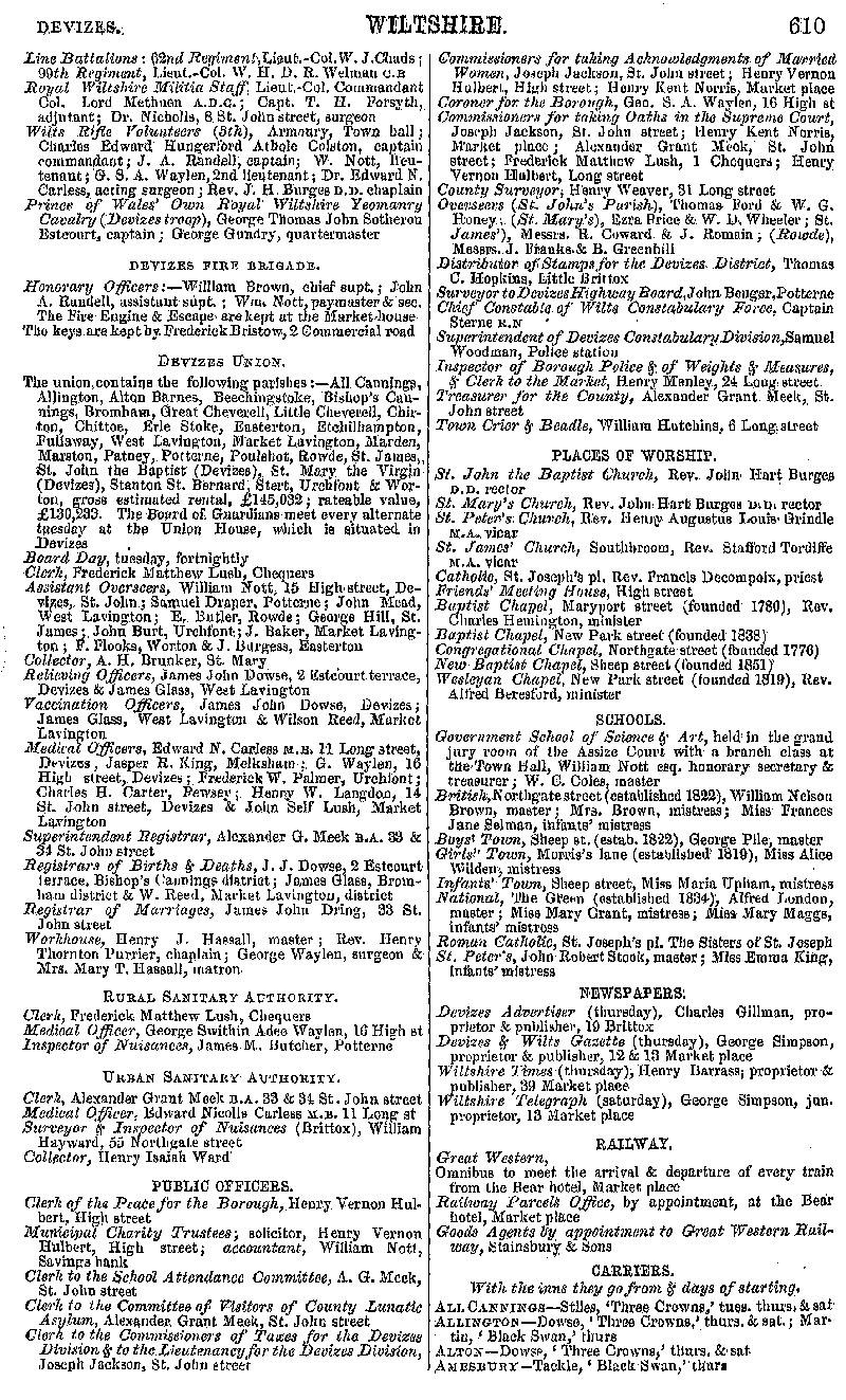 Page 55 Devizes; official establishments, churches, schools, newspapers, railway, carriers.