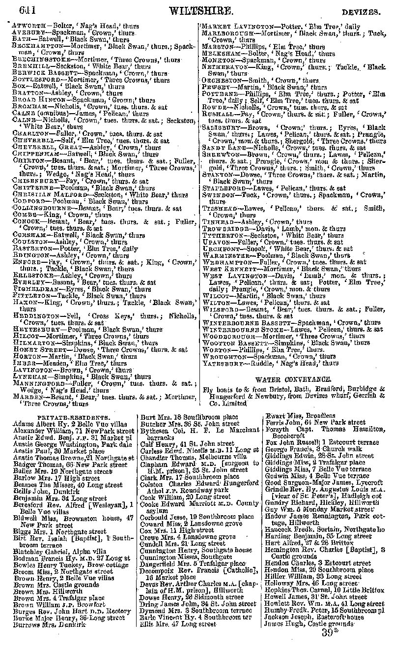 Page 56 Devizes; carriers, fly boats, private residents Adams to James.