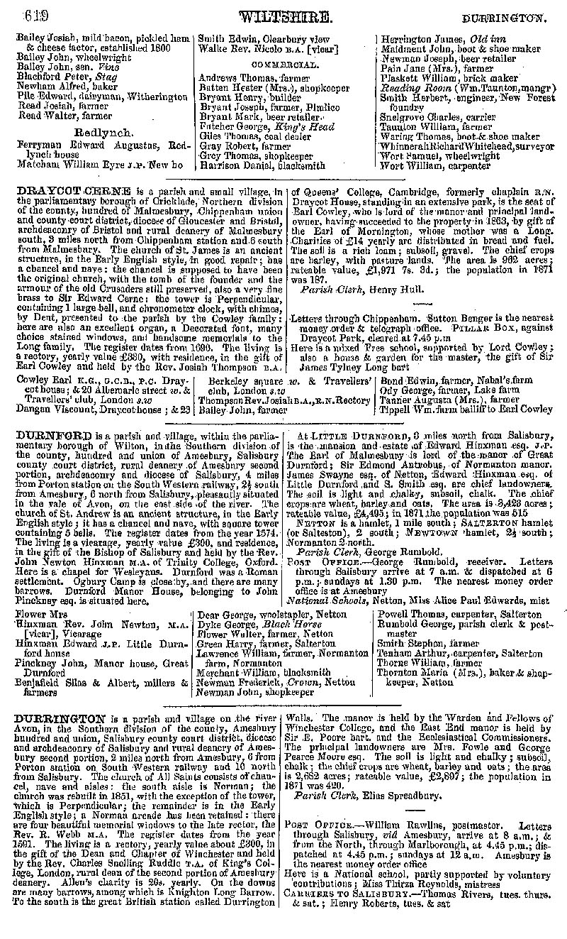 Page 64 Description and residents of Downton (including Charlton All Saints and Redlynch), Draycot Cerne, Durnford and Durrington.