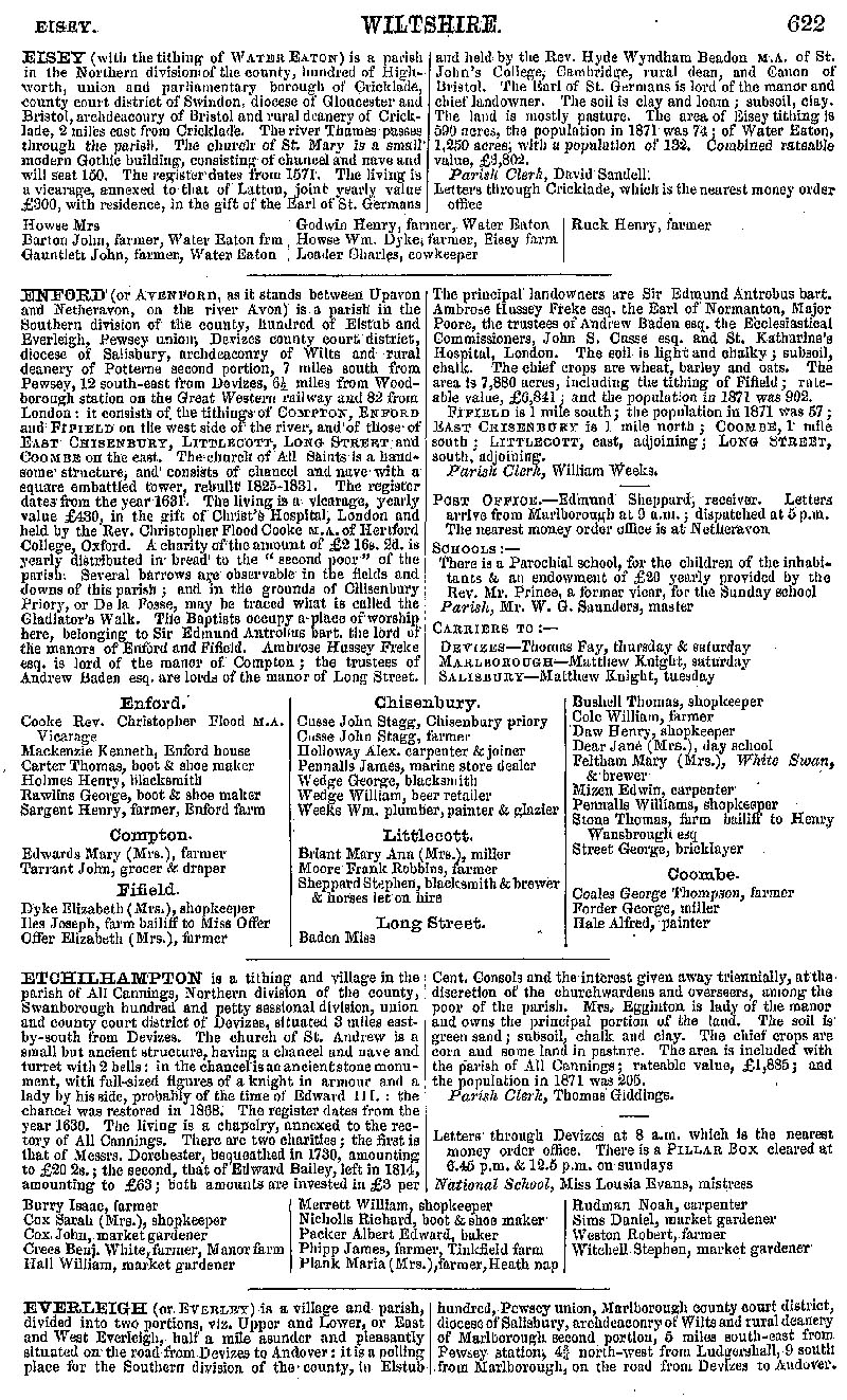 Page 67 Description and residents of Eisey, Enford, Etchilhampton and Everleigh.
