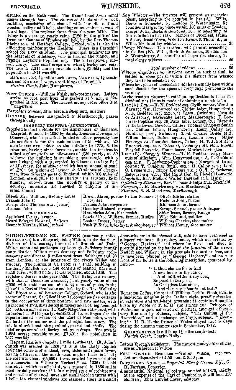 Page 71 Description and residents of Froxfield and Fugglestone St. Peter (including Bemerton and Quidhampton).