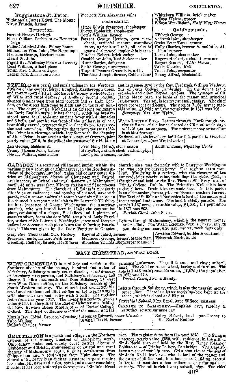 Page 72 Description and residents of Fugglestone St. Peter (including Bemerton and Quidhampton), Fyfield, Garsdon, West Grimstead and Grittleton.
