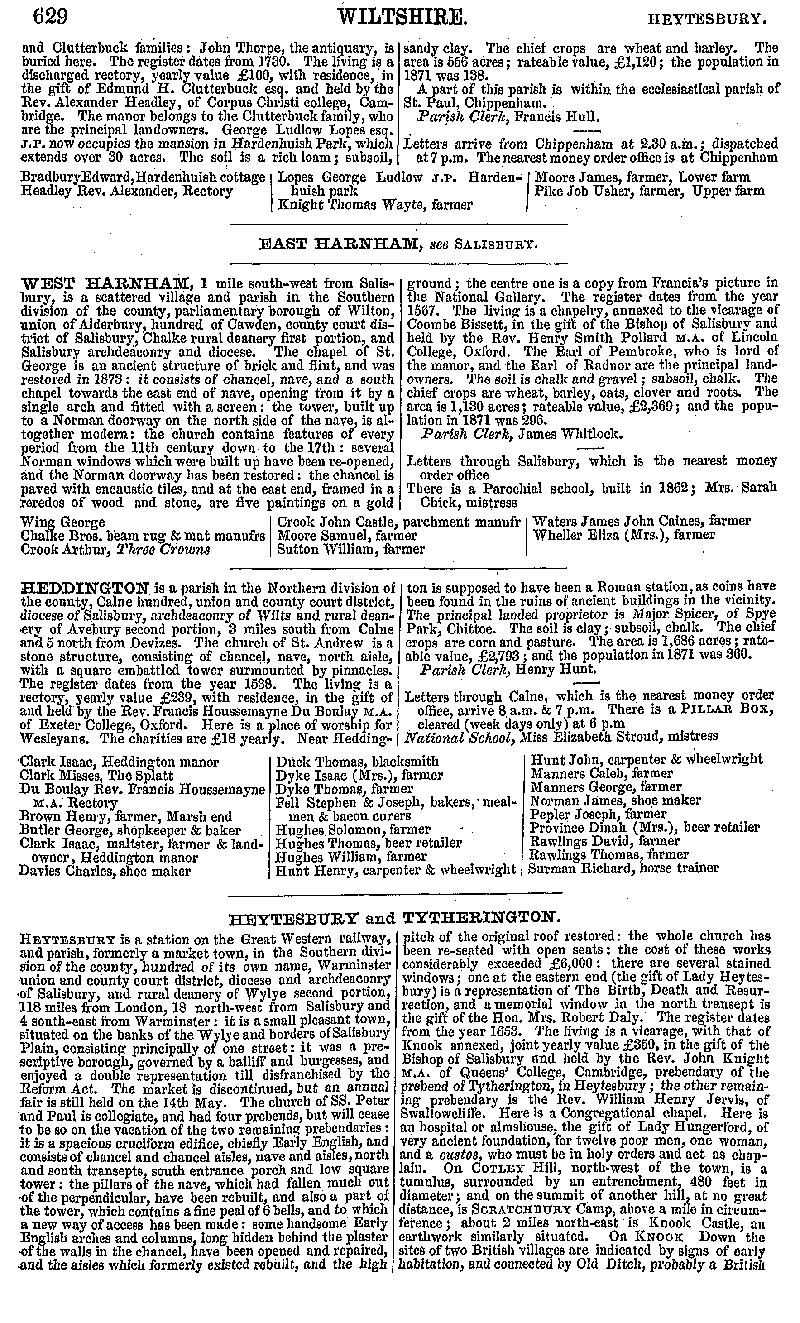 Page 74 Description and residents of Hardenhuish, West Harnham, Heddington and Heytesbury with Tytherington.