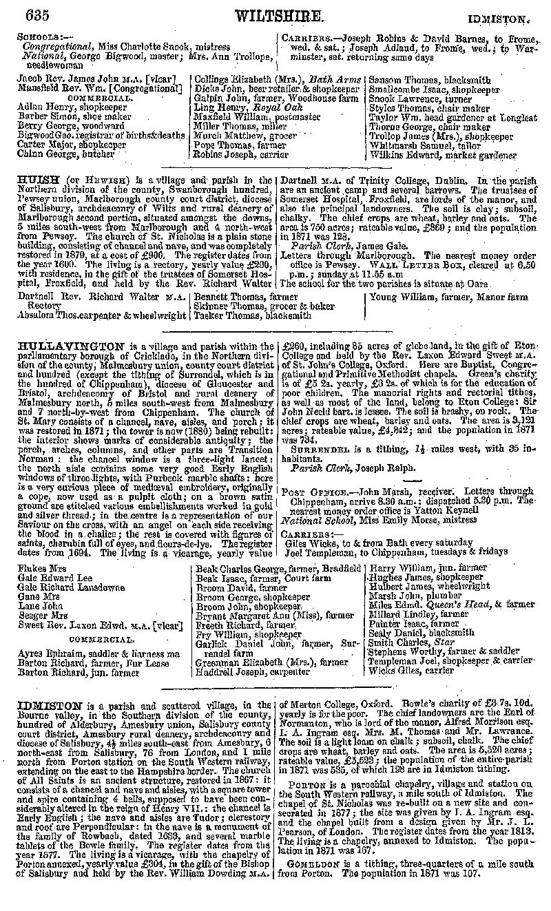 Page 80 Description and residents of Horningsham, Huish, Hullavington and Idmiston.