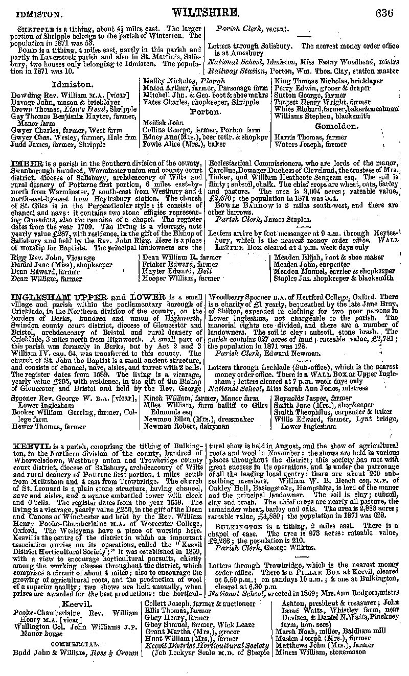 Page 81 Description and residents of Idmiston, Imber, Inglesham and Keevil.