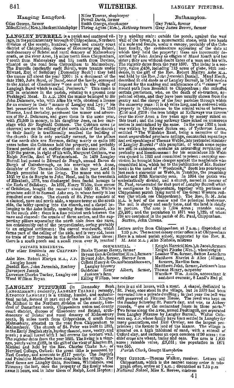 Page 86 Description and residents of Steeple Langford (including Hanging Langford), Langley Burrell and Kington Langley (Langley Fitzurse).