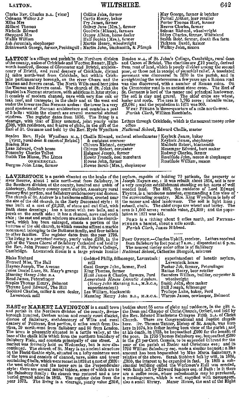 Page 87 Description and residents of Kington Langley (Langley Fitzurse), Latton, Laverstock and Market Lavington.