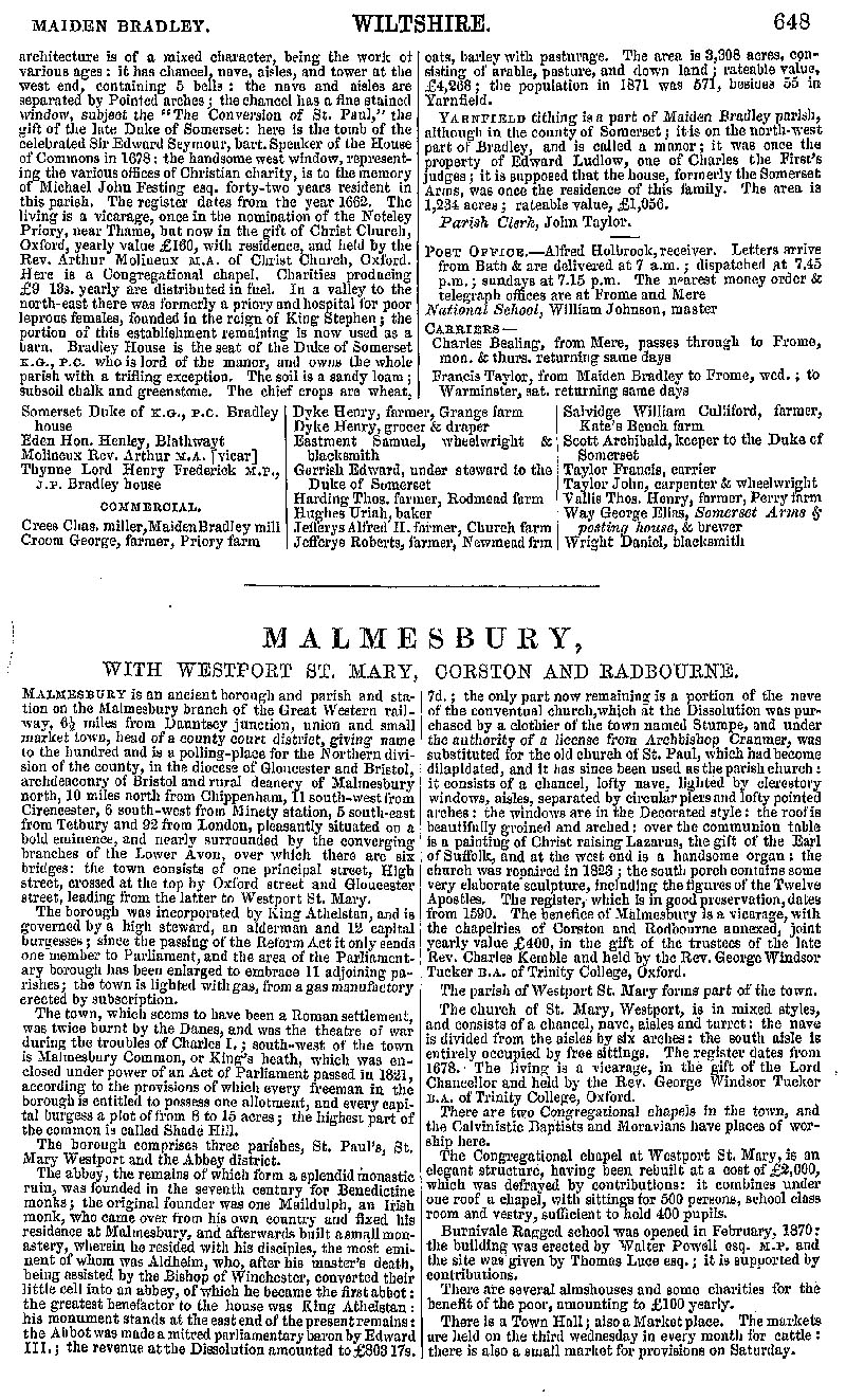 Page 93 Description and residents of Maiden Bradley. Malmesbury; history and description.