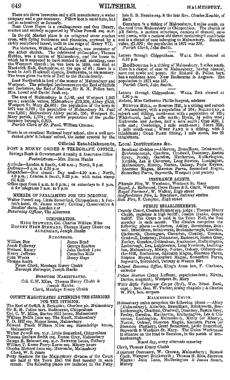 Page 94 Malmesbury: history and description, Rodbourne, Corston and Burton Hill, official establishments and local institutions.